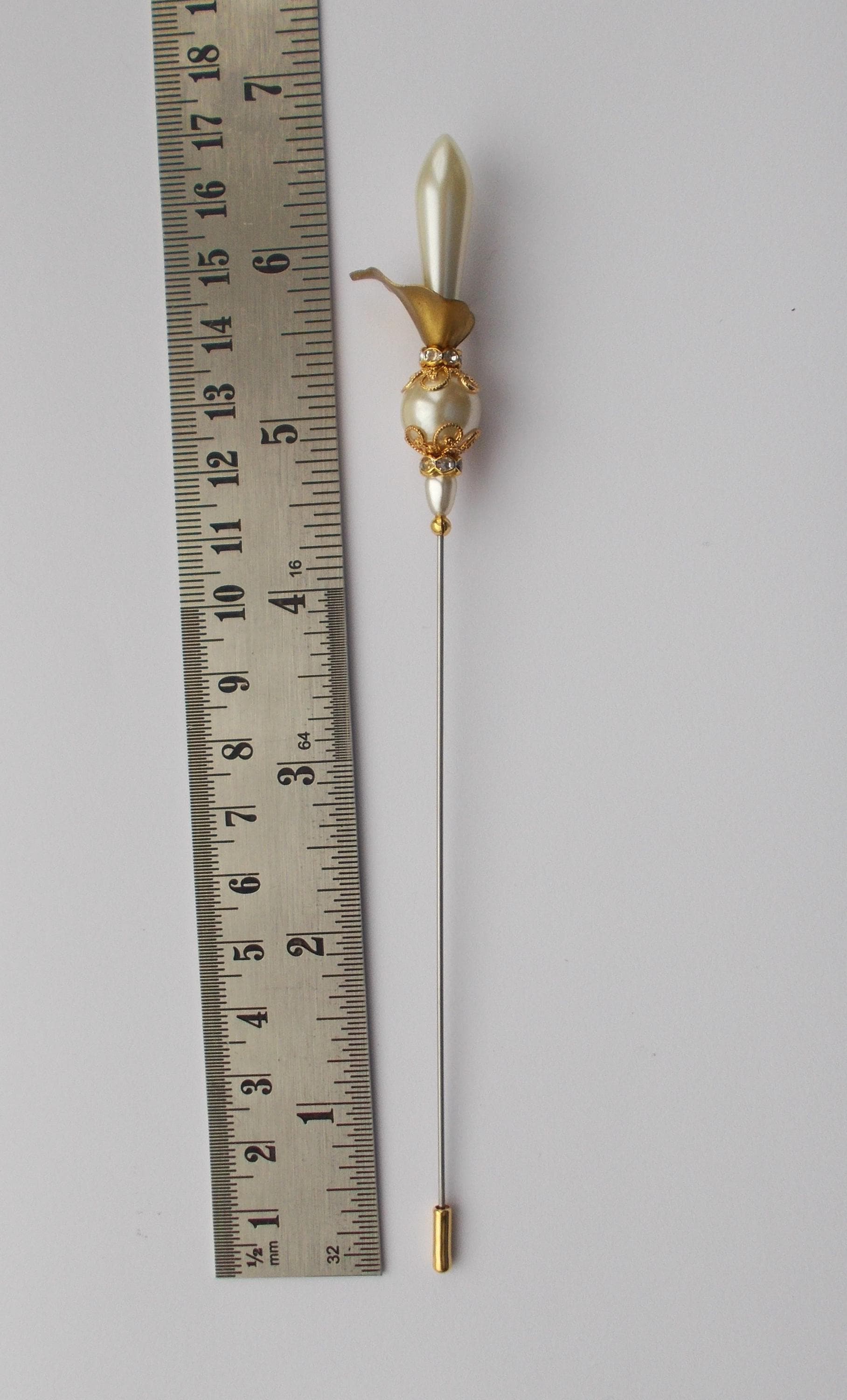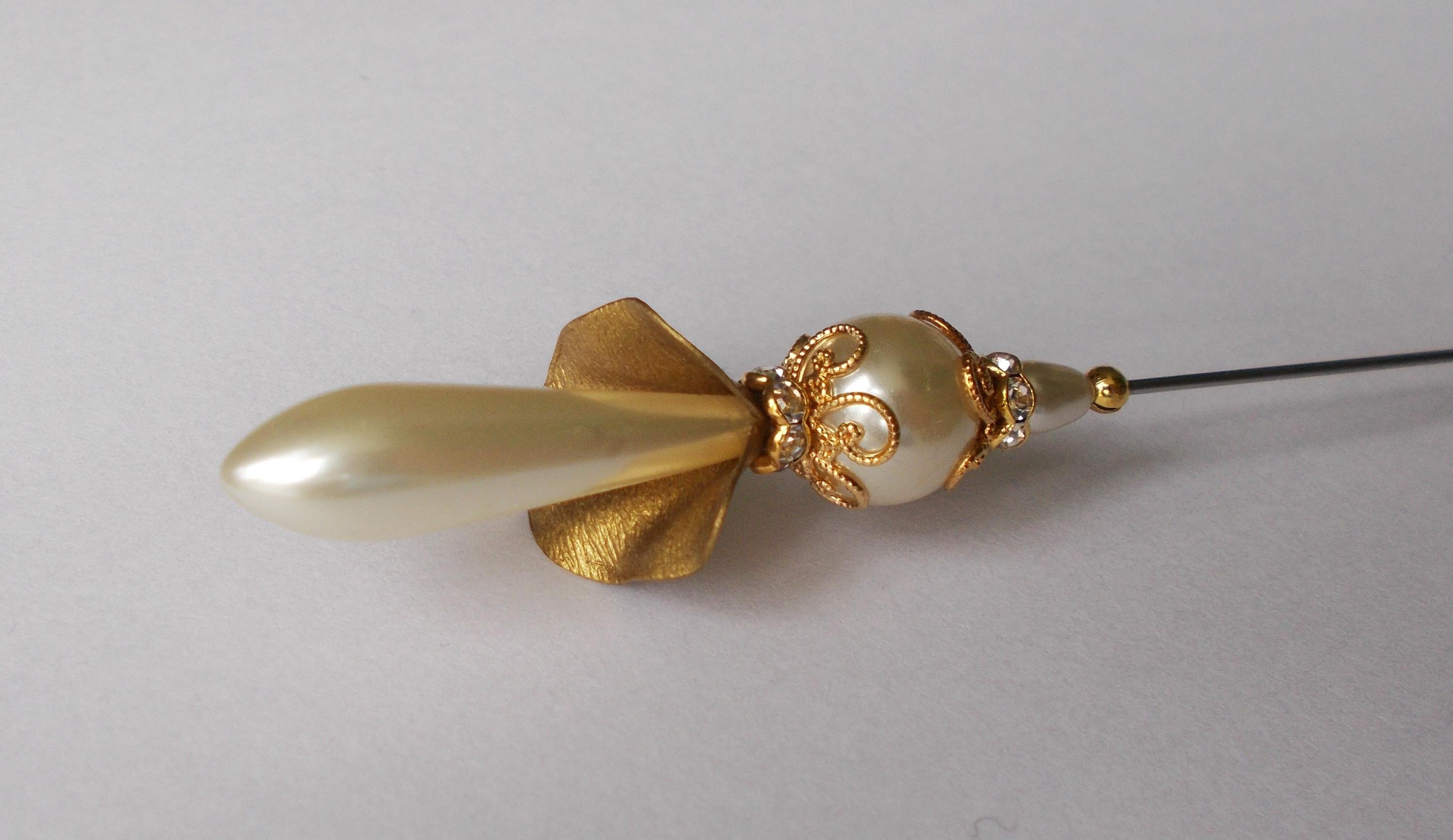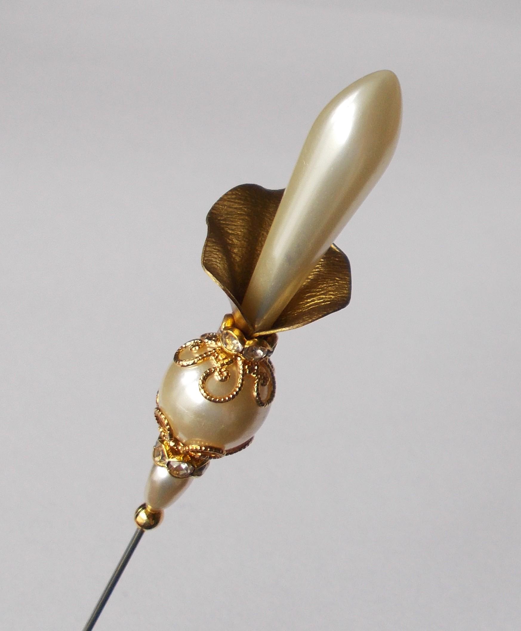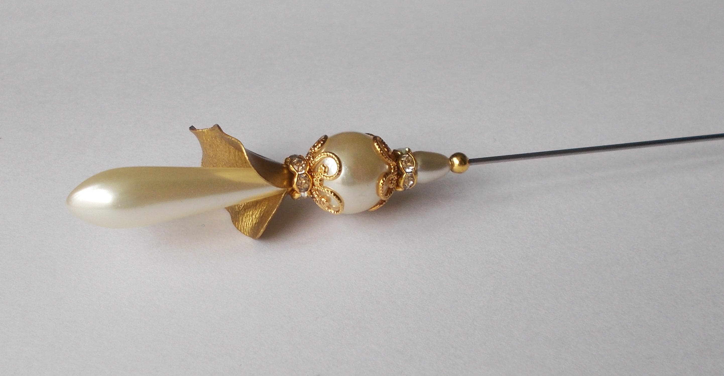 Pretty hatpin that I made using a mix of vintage faux pearls ( do show a little age), vintage and modern findings, 1mm diameter steel pin and hatpin is approx 6.5 inches long in total, comes with pin protector and will be sent in a gift box.