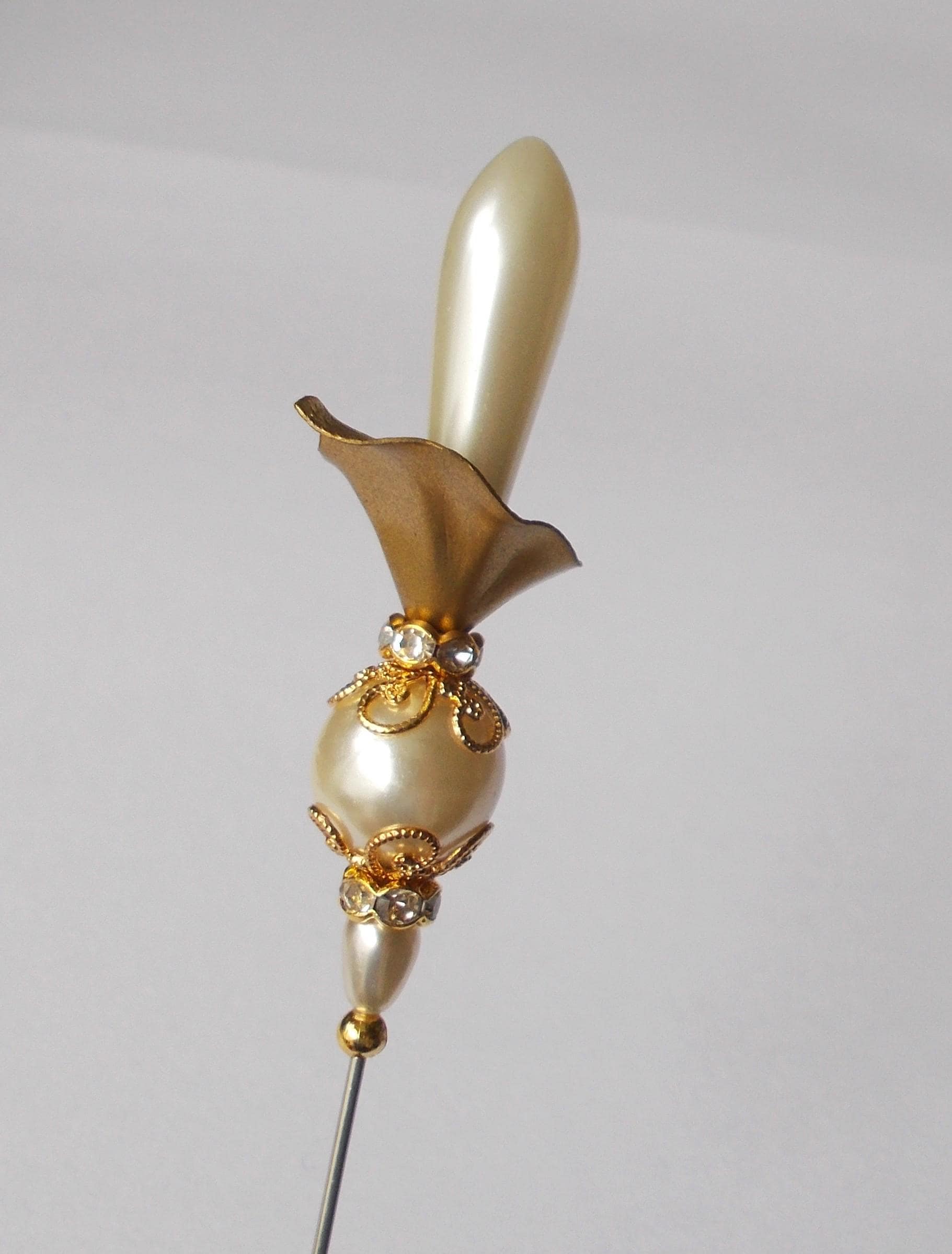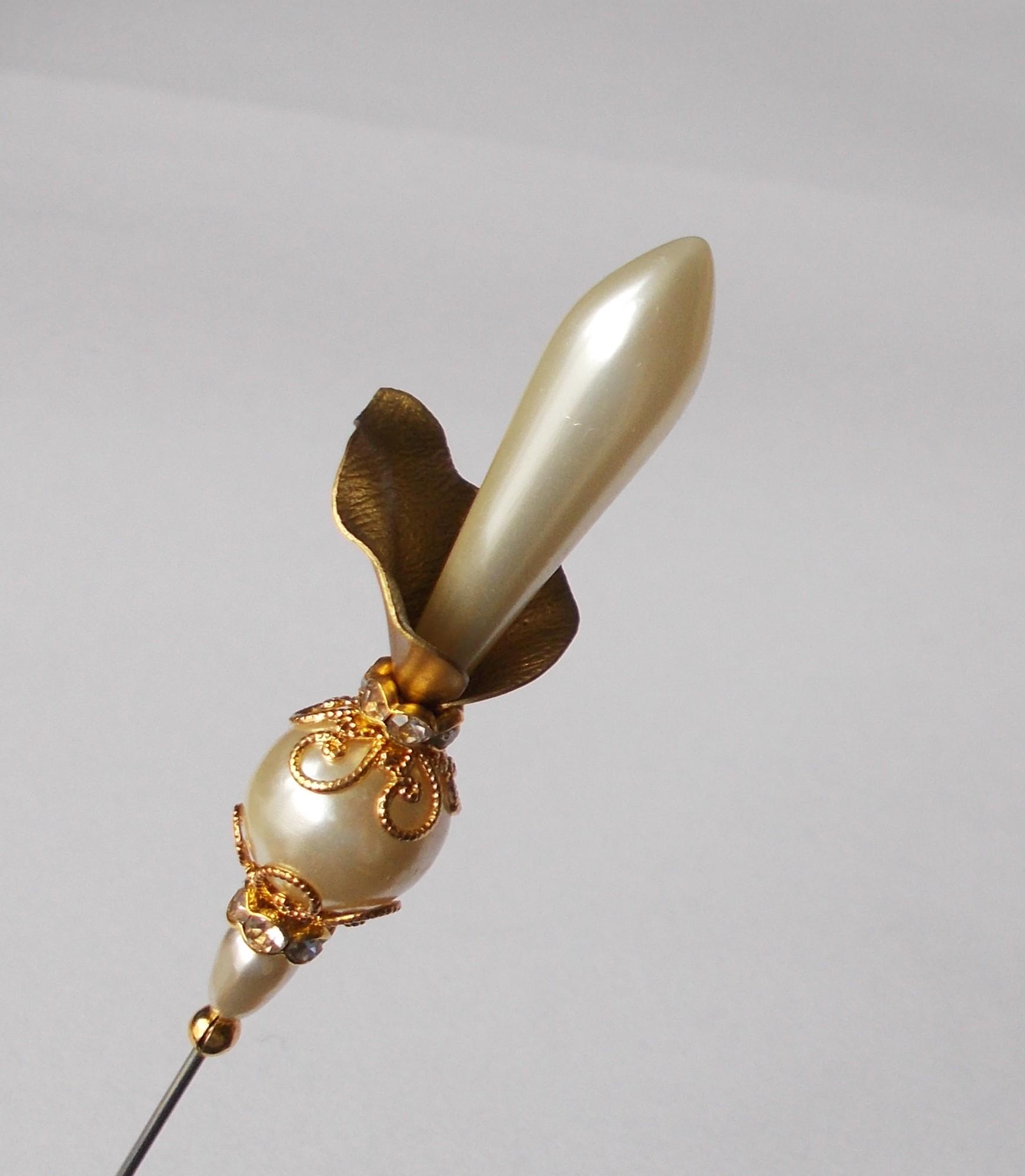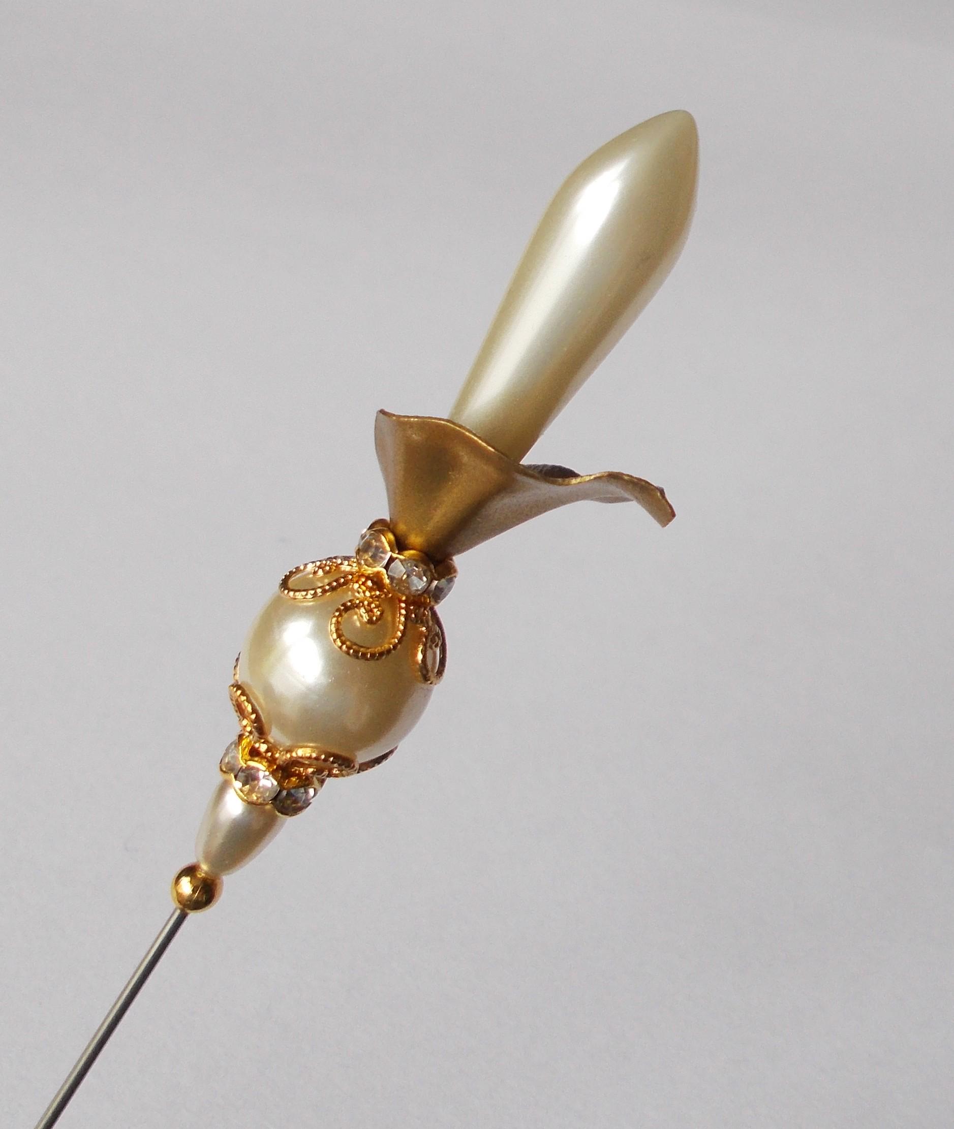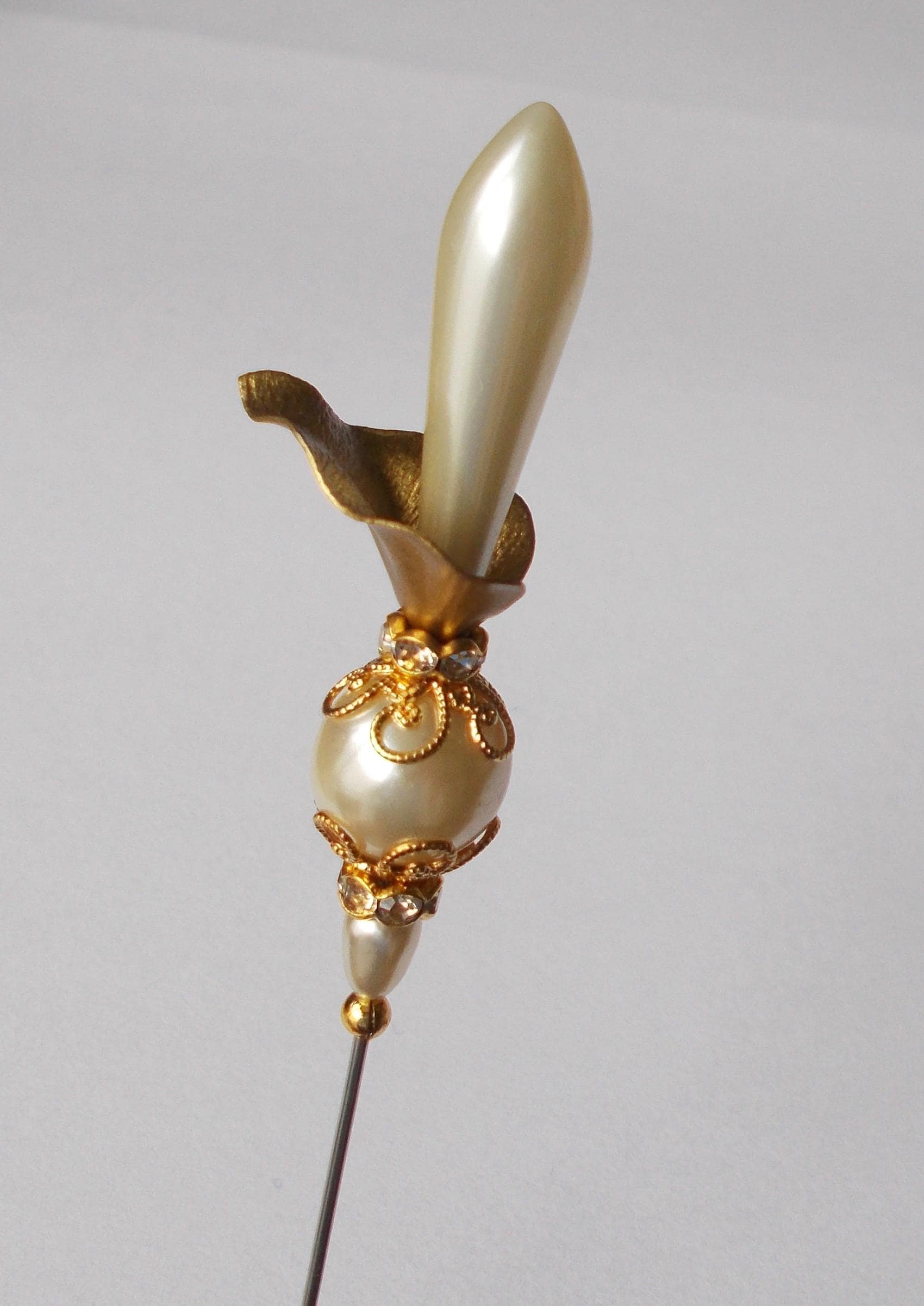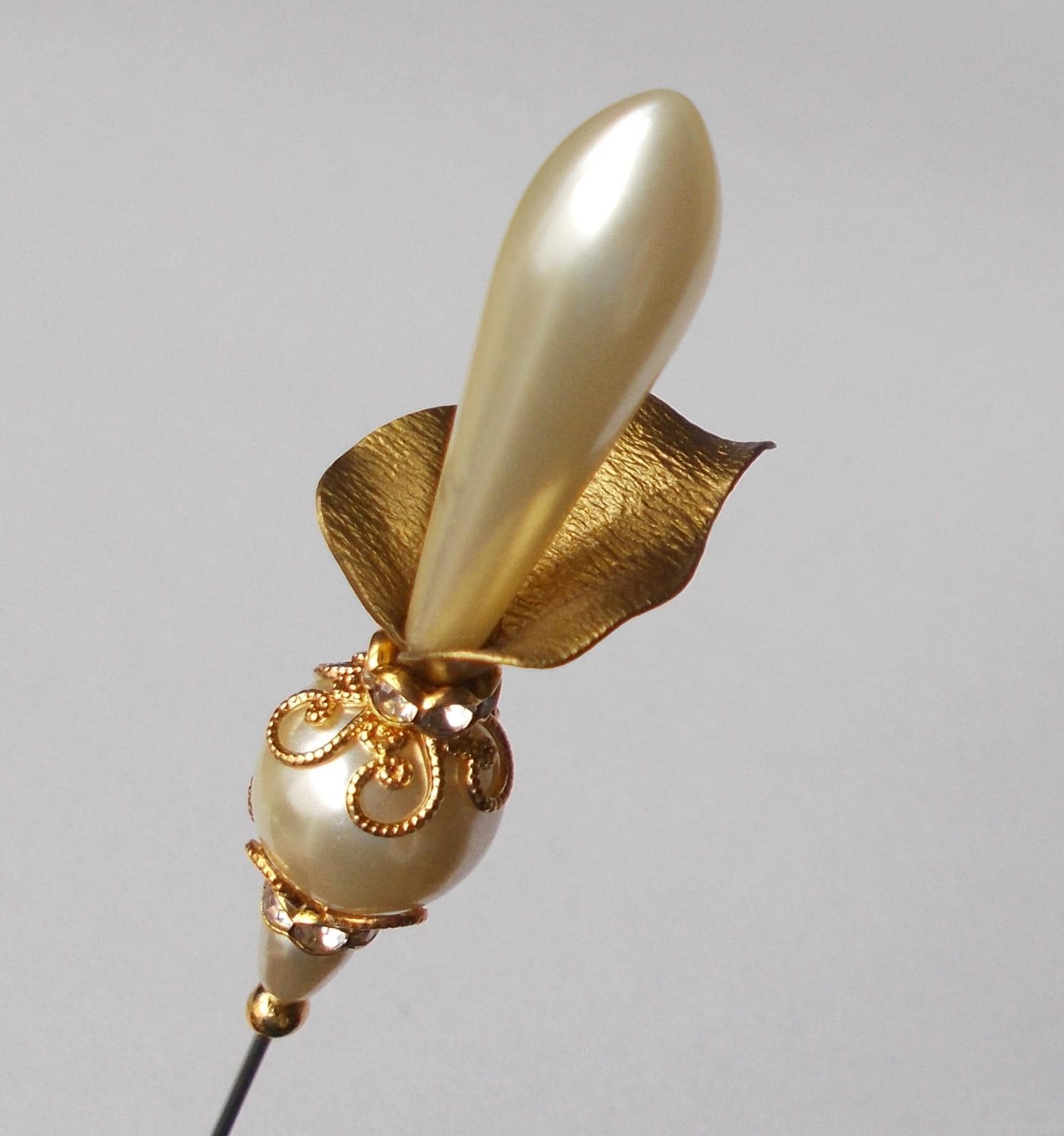 Pretty hatpin that I made using a mix of vintage faux pearls ( do show a little age), vintage and modern findings, 1mm diameter steel pin and hatpin is approx 6.5 inches long in total, comes with pin protector and will be sent in a gift box.