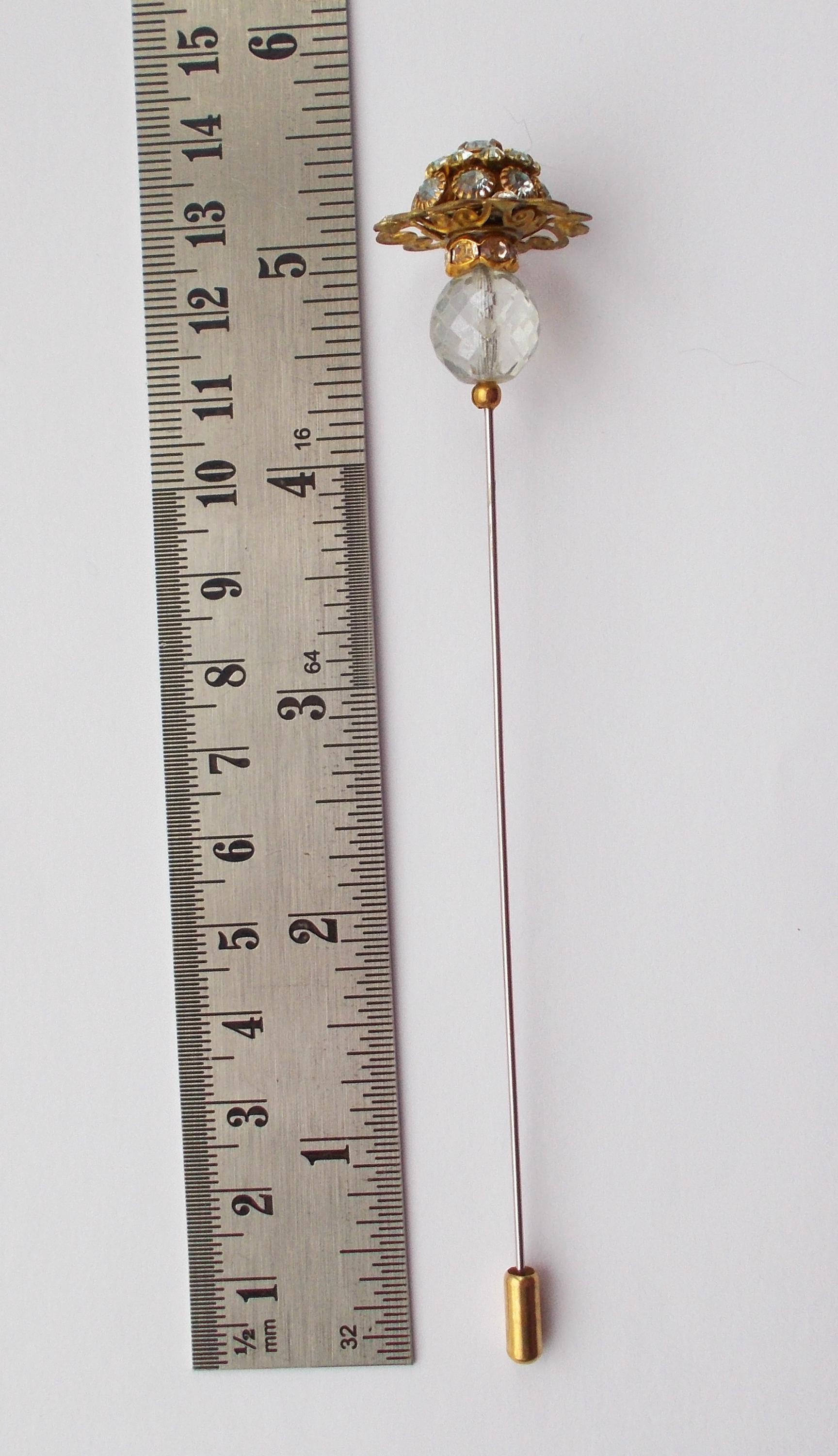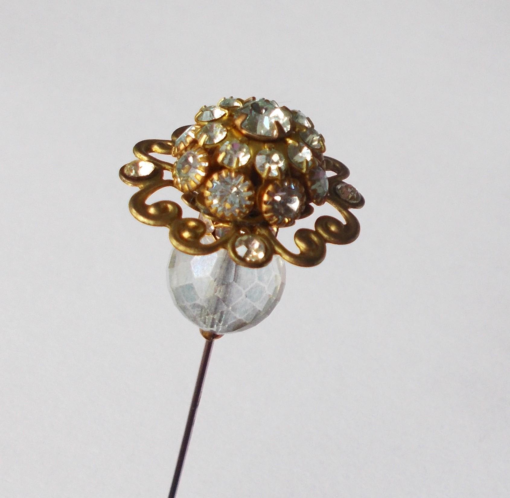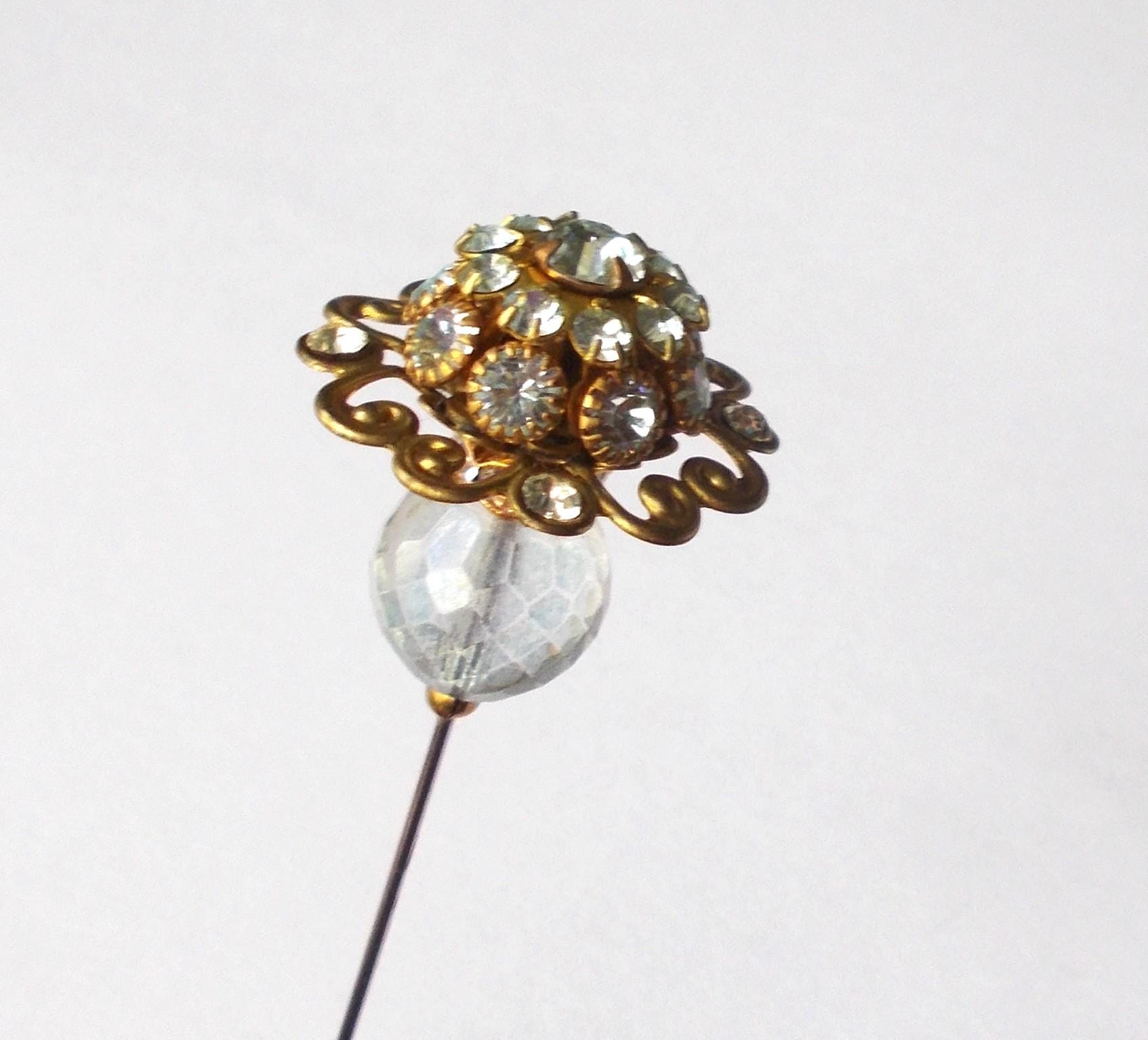 Hatpin - Limited Edition Stunning Rhinestone Decorated Metal Top and Glass Bead 7.25 inch Handmade 1mm Diameter Steel Hat pin