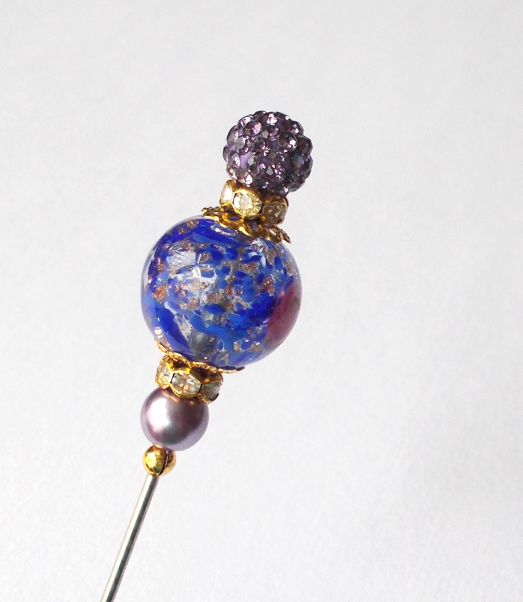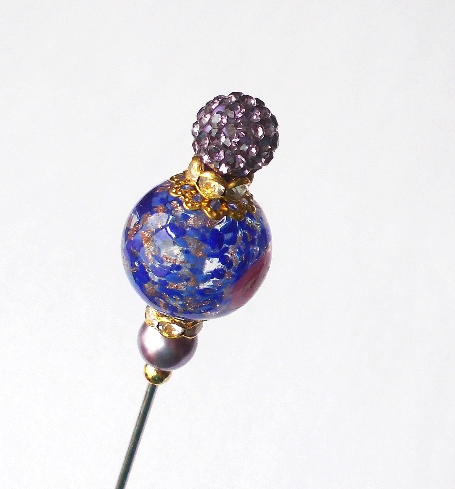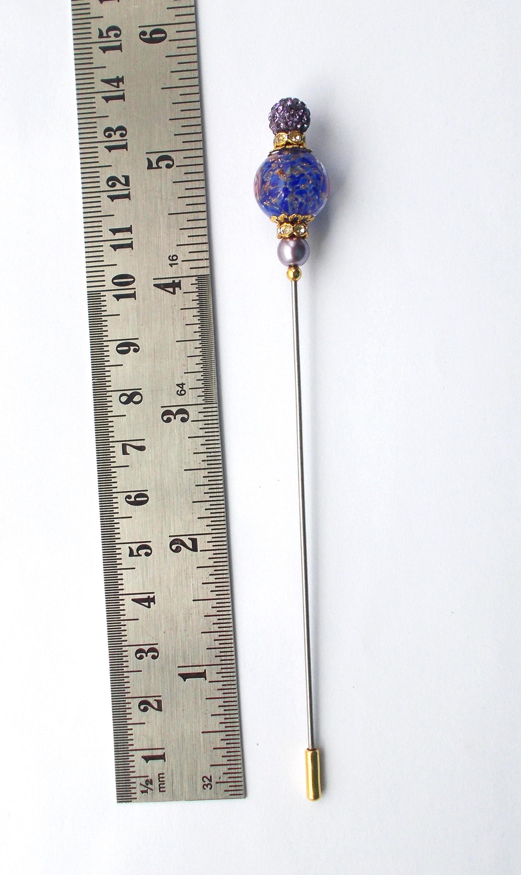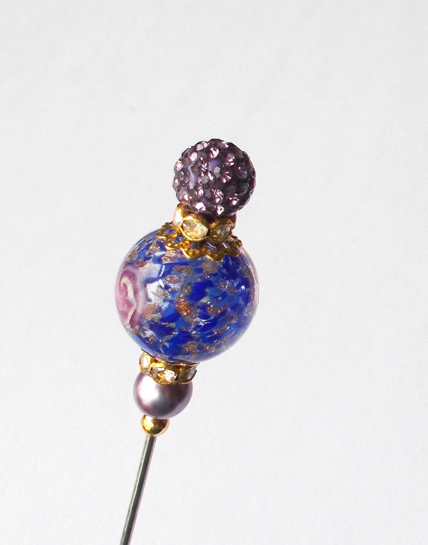 Hatpin - Blue & Lilac Gold Sommerso Venetian Glass Hatpin - 5.25 Inches Long - 1.2mm Diameter Steel Hat Pin