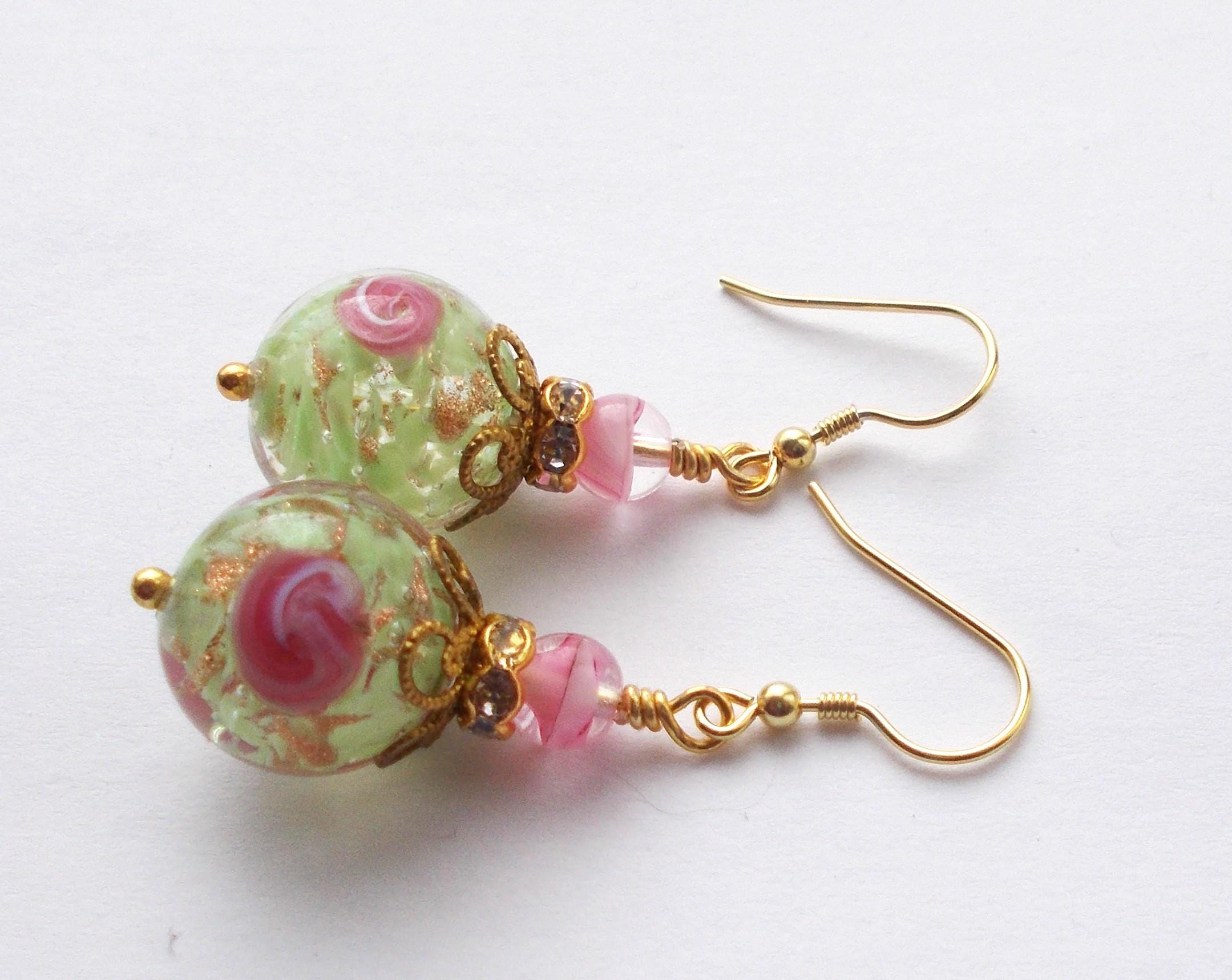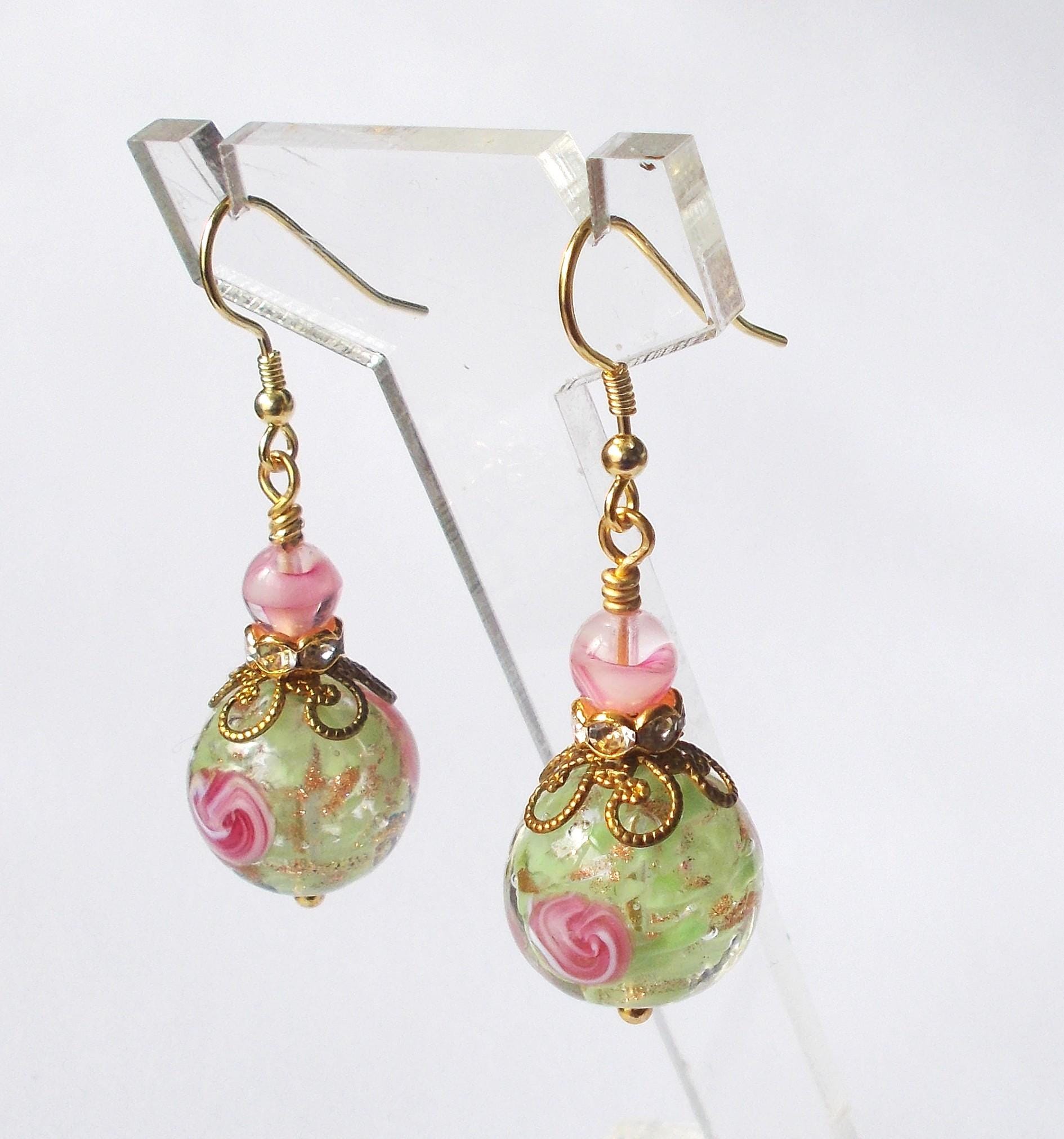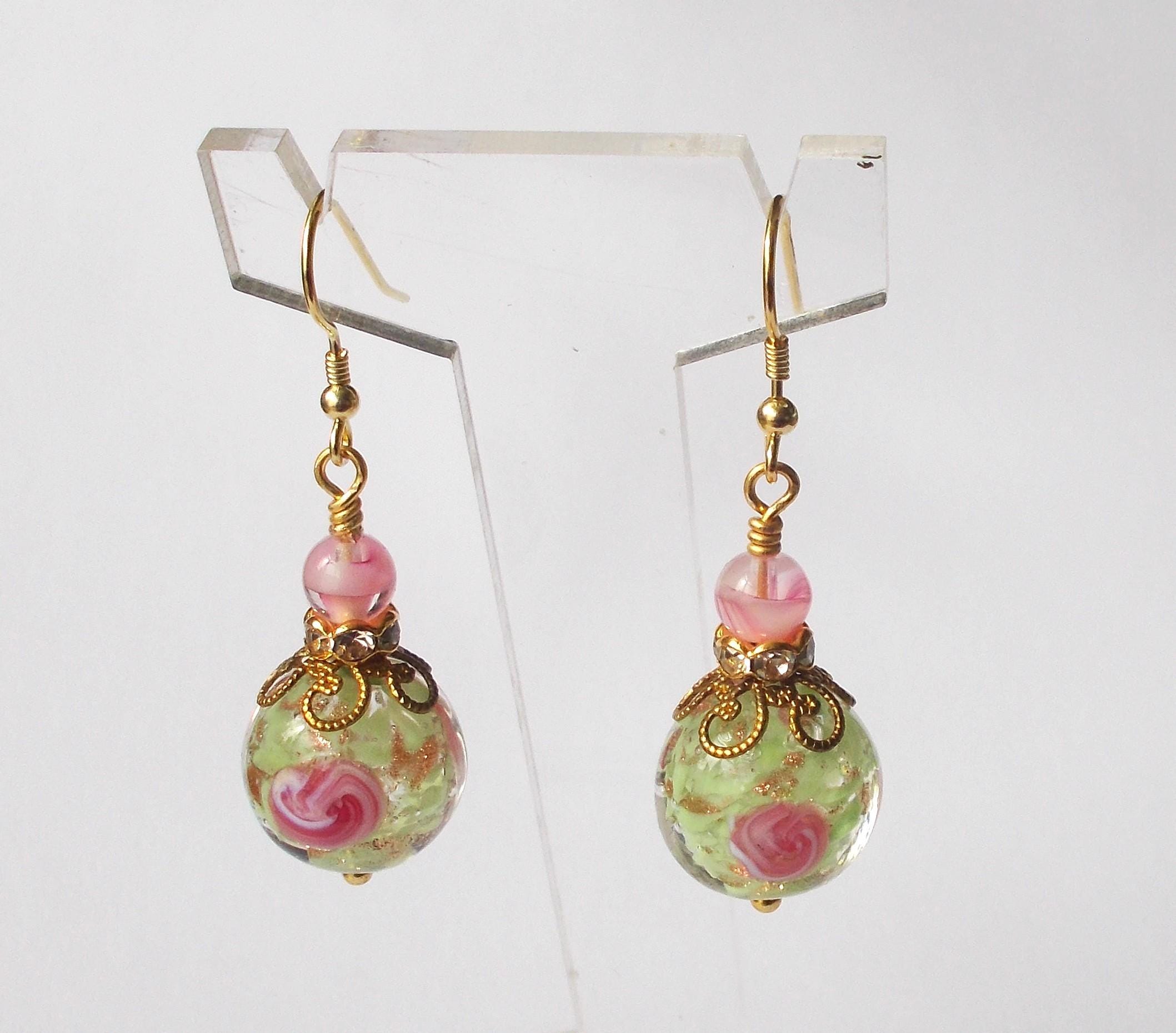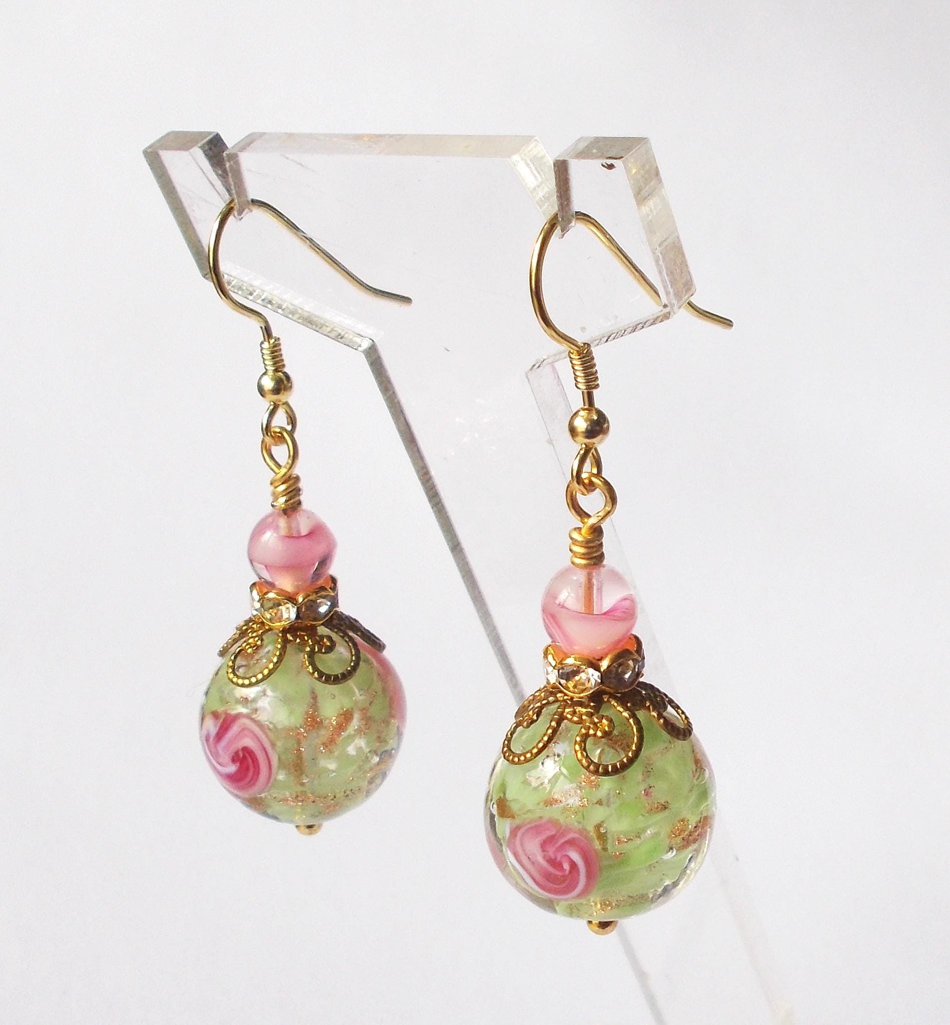 Earrings - Handmade Vintage Venetian Glass Beads, Brass Findings and Gold Vermeil Ear Hooks