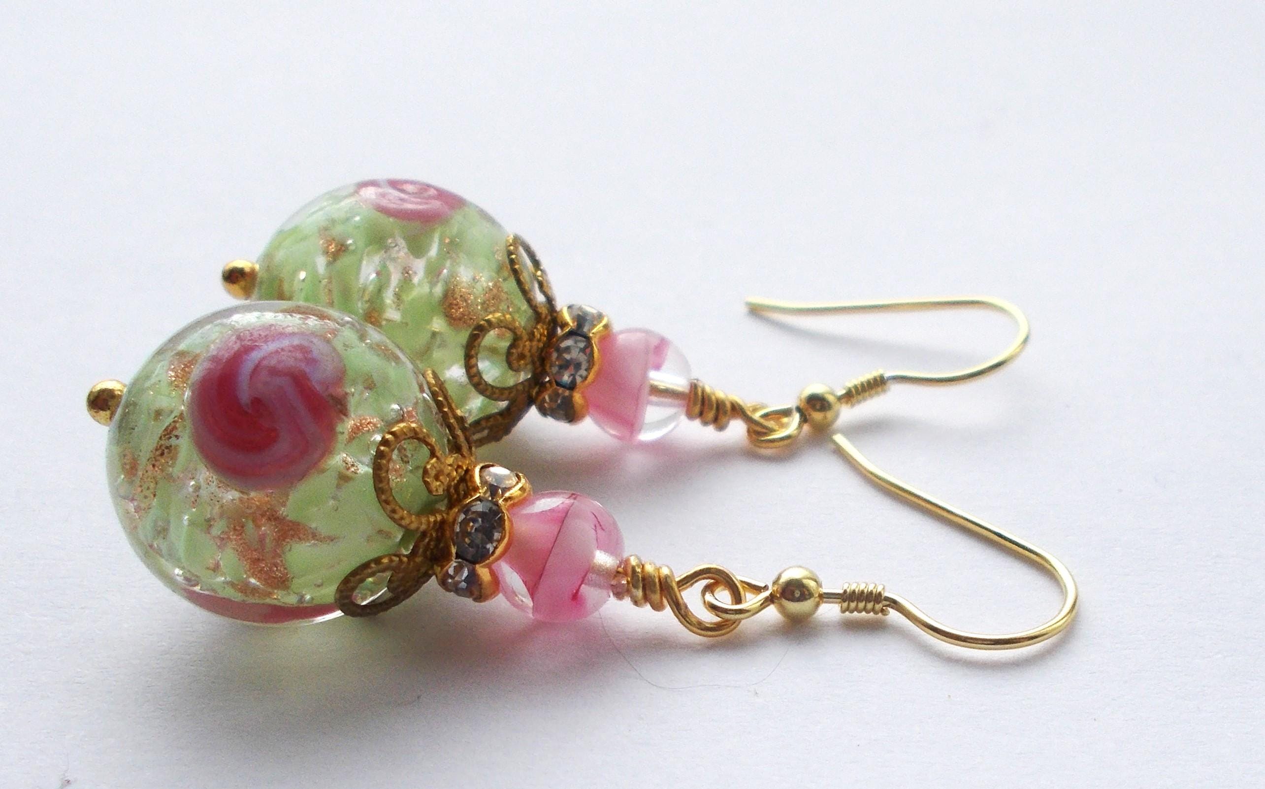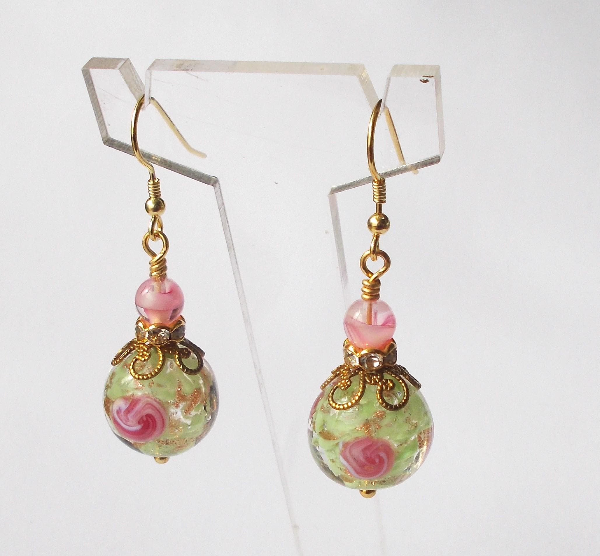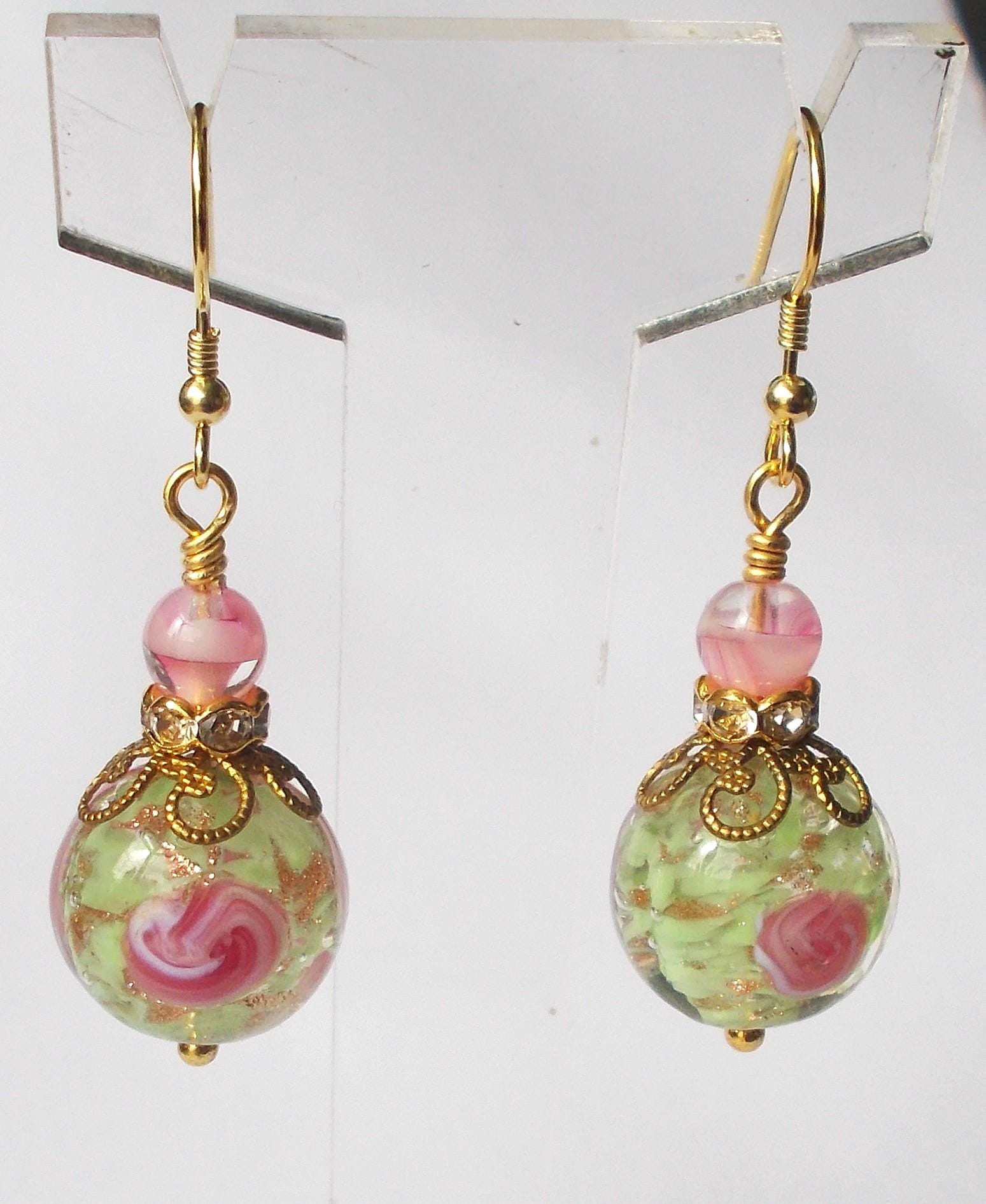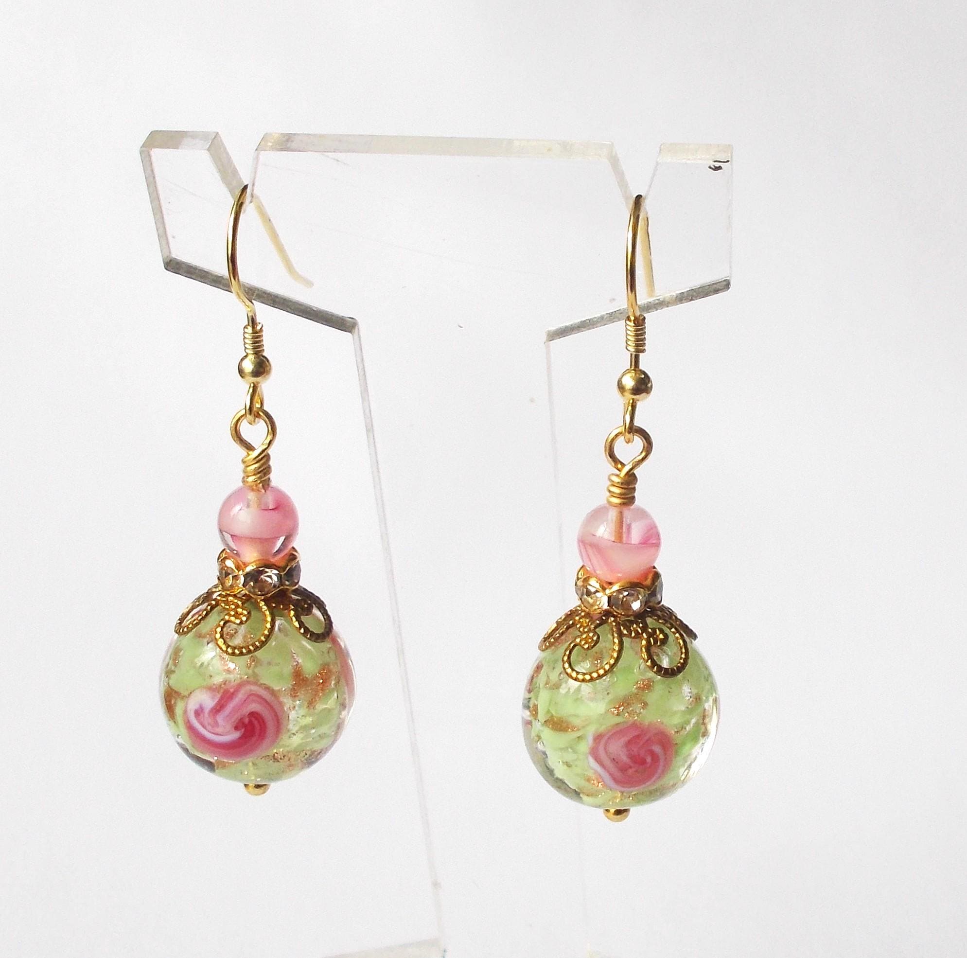Earrings - Handmade Vintage Venetian Glass Beads, Brass Findings and Gold Vermeil Ear Hooks